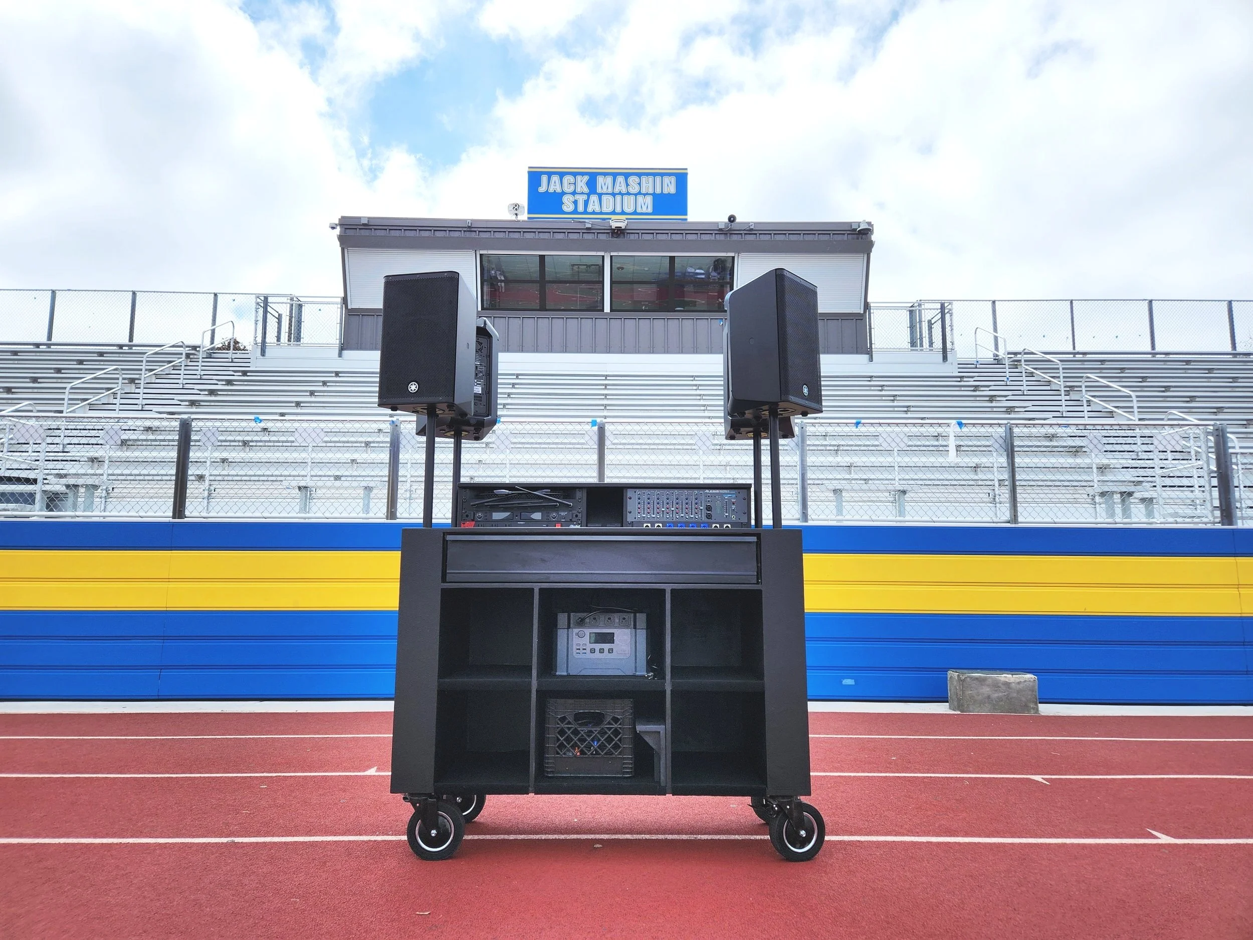 […] The cart has been AWESOME. It has ran our assemblies [with] 1200 students in the gym, senior awards night, and small lunch style rallies. Having everything in one place makes my life so easy! I Trained my class on it and kids can get the wireless mics and music going with no issue!!! The convenience of having it all built has been game changing for us. And it looks great! ⭐️⭐️⭐️⭐️⭐️